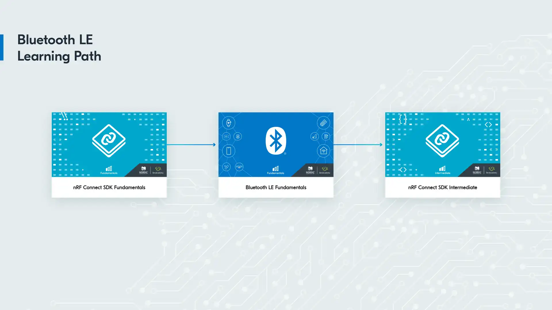 You will able to receive an electronic certificate from Nordic Developer Academy upon completion of courses. By issuing you such a certificate, Nordic Semiconductor certifies that you have completed the applicable course, but does not provide any further warrants or endorsements for any particular skills or professional qualifications.